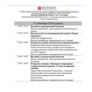 11 сентября 2019 г. в рамках Православной выставки-ярмарки "Благословенная Самара" (10-17 сентября), сотрудником отдела редких книг, главным библиографом Ларисой Вячеславовной Сташенковой, была прочитана лекция "Книжные сокровища: старопечатные издания XVII века из фондов Самарской областной универсальной научной библиотеки".