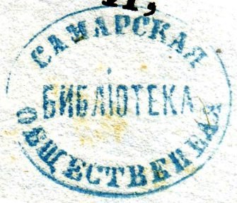 Штемпель: овальный, 23 х 27, в линейной рамке. Надпись: Самарская / библiотека / общественная |