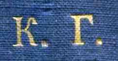 Суперэкслибрис: на корешке, 5 х 15, без рамки, золотое тиснение, буквенный, инициалы «К. Г.» |