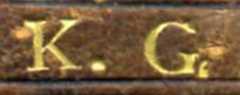 Суперэкслибрис: на корешке 5 х 15, без рамки, золотое тиснение, буквенный, инициалы «К. G.» |