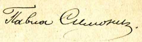Книжный знак: 5 х 37, рукописный (чернила), шрифтовой. Надпись: «Павла Симони» |