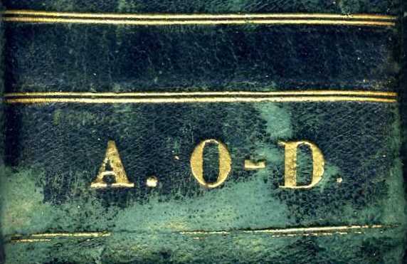Суперэкслибрис: на корешке, 6 х 27, без рамки, золотое тиснение, буквенный, инициалы «A. O-D» [Анатолий Орлов-Дывыдов] | |